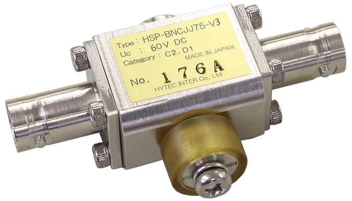 HSP-BNCJJ75-V3は、同軸ケーブルにより接続された機器を、雷サージから保護するための保安器です。