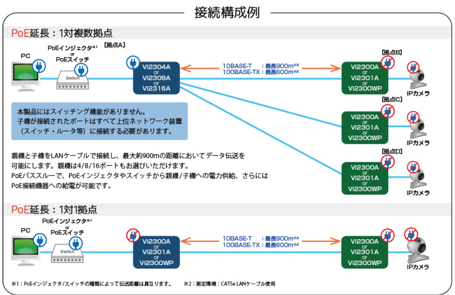 MaxiiCopper Vi2300Aシリーズ:接続構成例/給電距離性能