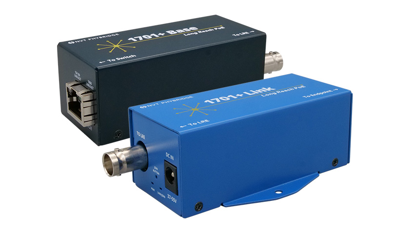 1701+シリーズは、同軸ケーブルを使用してPoEの延長が可能な同軸PoE延長装置で、最長900m※1までの延長に対応しています。