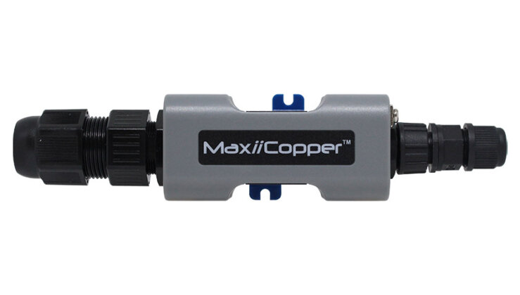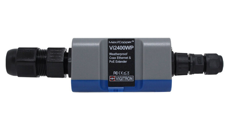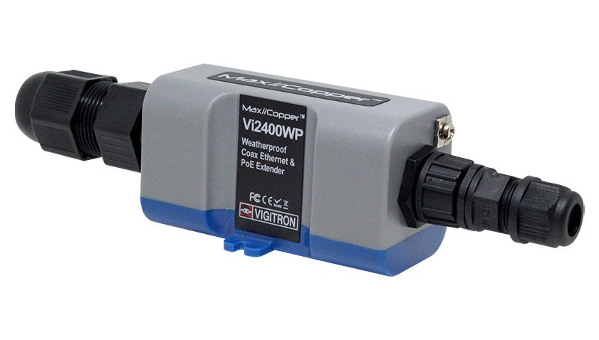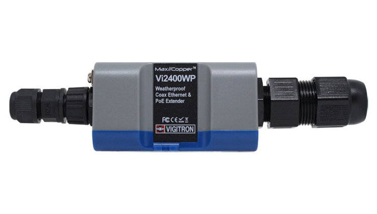 MaxiiCopper Vi2400WPは、同軸ケーブルを利用した、PD(受電側機器)へ最大25.5W電力給電可能なPoE延長装置です。