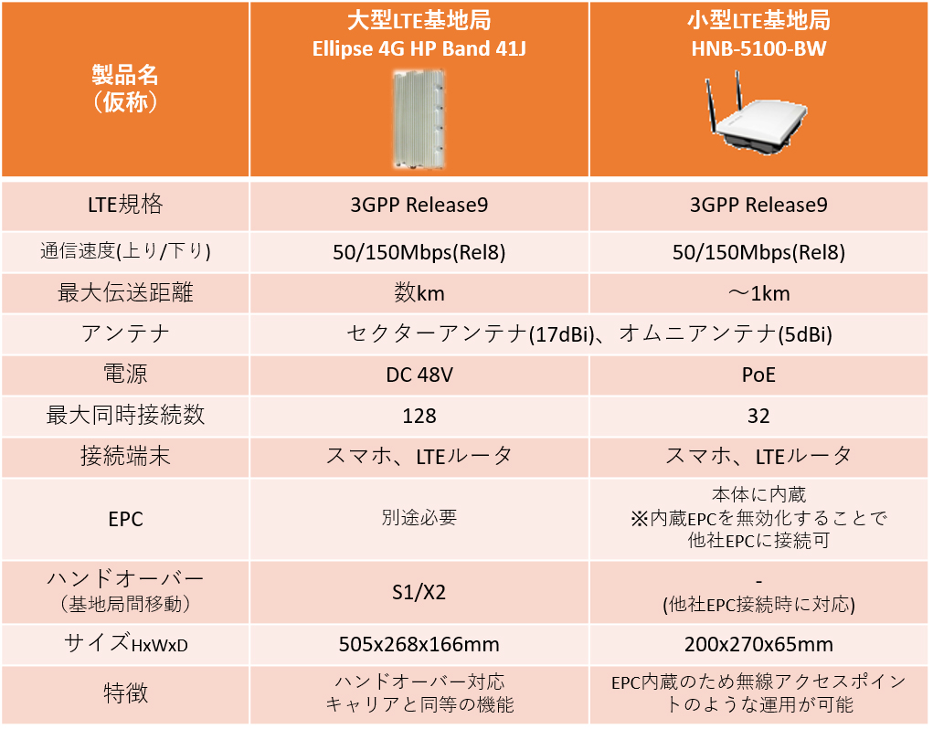 • 基地局を2種類ラインアップ、EPCも併せてご提供可能